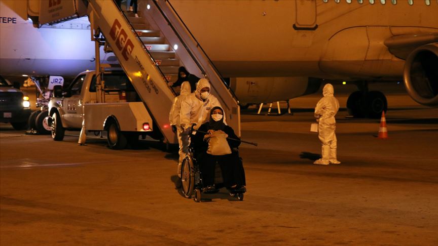 Uçağa giren sağlık ekipleri, yolcuları sağlık kontrolünden geçirdi. Daha sonra pasaport kontrolü yapılan yolcular, apronda bekletilen otobüslere bindirildi.