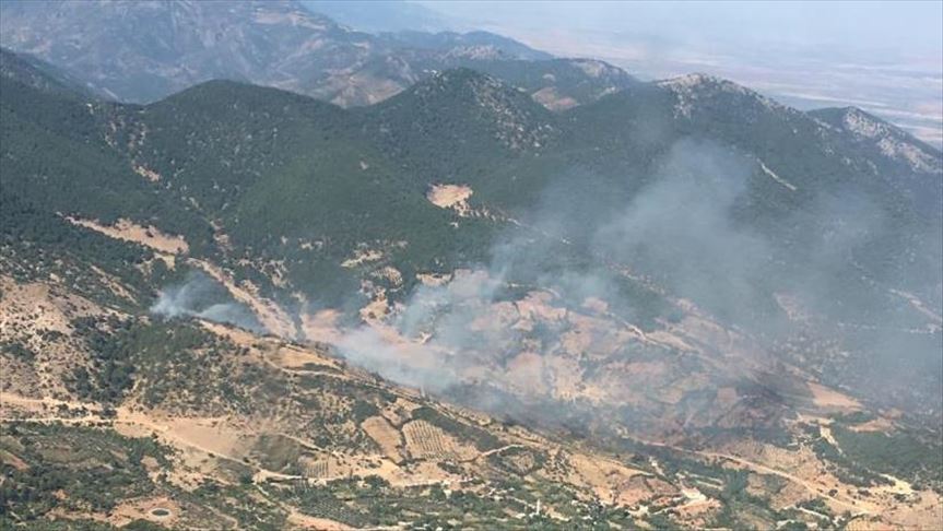 Yangına, ekiplerce iki helikopter ve 3 arazözle müdahale ediliyor.