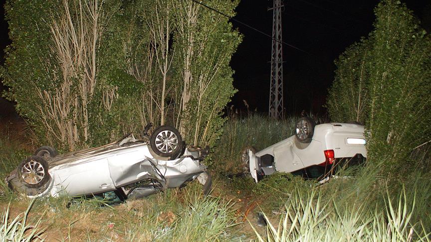 Çarpışmanın etkisiyle her iki otomobil de yol kenarındaki bahçeye devrildi.