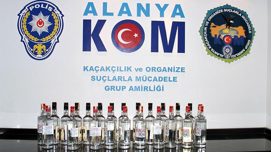 Antalya'nın Alanya ilçesinde bir depoda, 14 bin 500 şişe sahte içki ele geçirildi.