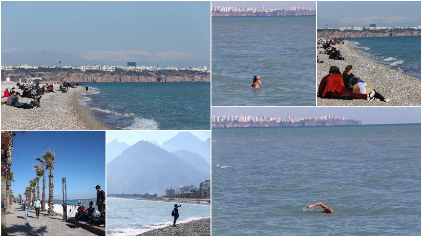 Antalya'da güneşli havayı fırsat bilen bazı vatandaşlar ve turistler, denizin keyfini çıkardı.