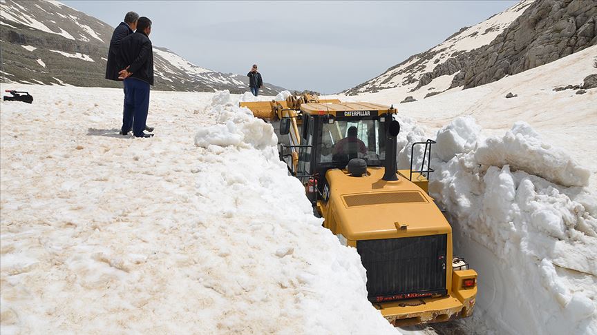 Kar kalınlığı yer yer 10 metreyi ulaşan bölgede iş makineleriyle çalışma yürüten ekipler, göçerlerin yolunu açmak için çaba harcıyor. Gündoğmuş ilçesini 55 yaylaya bağlayan Söbüçimen yayla yolundaki çalışmalar güçlükle sürdürülüyor.
