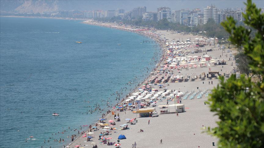 Sıcaktan bunalan vatandaşlar ile yabancı turistler serinlemek için Konyaaltı ve Lara sahillerinde yoğunluğa neden oldu.