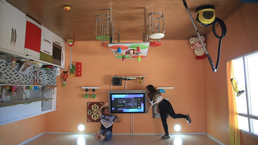 Eve girince önce hafif bir baş dönmesi yaşadığını vurgulayan Saparova, "İçeride her şey tamamen ters duruyor. Bütün eşyalar tavanda. Kendinizi aslında tavanda gibi hissediyorsunuz. Herkesin görmesi gereken bir yer." ifadelerini kullandı.