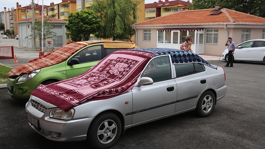Bazı araç sahipleri kapalı otoparklara yönelirken, bazıları da araçlarının üstünü halı ve battaniye ile kapattı.