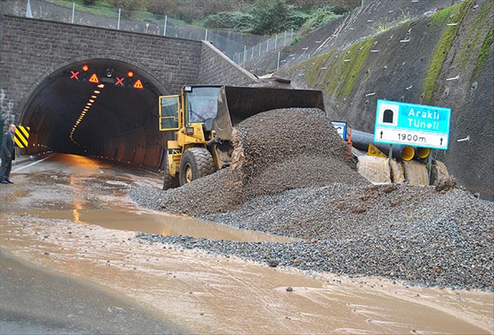 Karadeniz Sahil Yolu Araklı tünelinin Araklı ilçesi kısmında da yamaçlardan gelen çamur ve su nedeniyle yolun tek şeridini ulaşıma kapattıklarını kaydeden Tezcan, yolda tedbir amacıyla ulaşımın tek şeritten kontrollü olarak sağlandığını söyledi.
