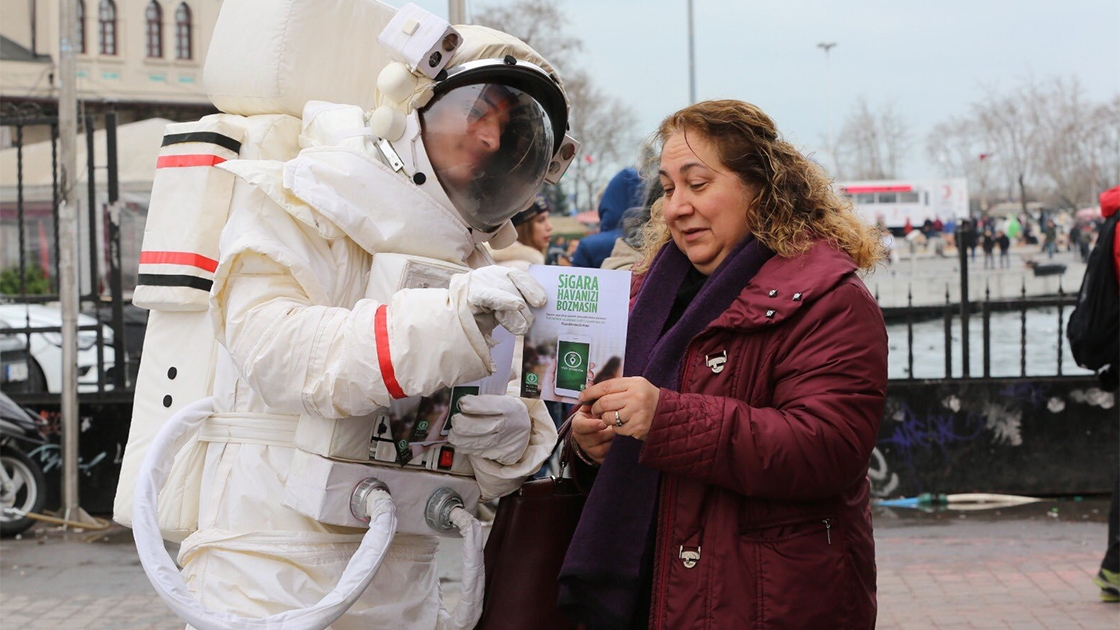 "Her zaman medyanın çok güçlü bir yanı var ve bu tarz konularda da medyayla beraber hareket etmemiz gerektiğini düşündük. O yüzden bu tarz bir viral filmle aslında açık alanlarda ihlalin yapıldığını, bu ihlalin önüne geçilmesi gerektiğini, yanınızdakini pasif içici konuma düşürerek, zarar verdiğinizi anlatmak adına böyle bir yönteme başvurduk. Çok da güzel dönüşleri oldu. Herkesin çok sahiplendiği bir astronotumuz oldu. Artık bu astronot da pasif içiciliğin önünde duran bir sembol olarak birçok yerde karşımıza çıkacak. En azından toplumsal olarak bir farkındalık yaratmayı amaçladık."