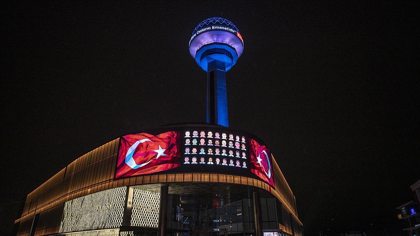 Ankara'nın simgesi Atakule, şehit ailelerine verilen destek mesajıyla ışıklandırıldı.