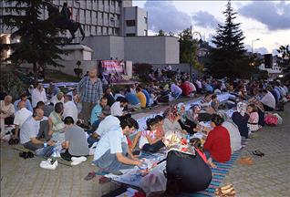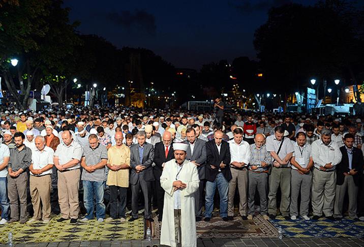 Ellerinde, "Zalimler için yaşasın cehennem, seninleyiz Mursi" yazılı pankartlarla meydanda toplanan ve tekbir getirerek, çeşitli sloganlar atan yaklaşık 2 bin kişilik grup, iftar yaptıktan sonra birlikte akşam namazı kıldı. Ardından Kur'an-ı Kerim okundu. Bazı üyelerin şiir okumasından sonra gruptakiler teravih namazına geçti.
