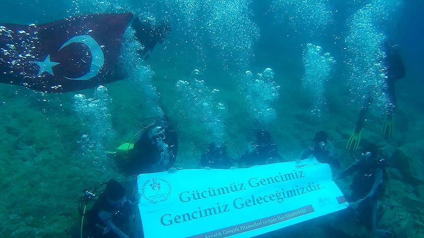 Balıkesir'in Ayvalık ilçesinde, 19 Mayıs Gençlik ve Spor Bayramı dolayısıyla "Atatürk ve Gençlik Dalışı" gerçekleştirildi.