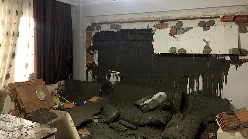 Eyüpsultan'da inşaat çalışması sırasında dökülen betonun bitişikteki binanın duvarını yıkarak eve girmesi sonucu baba ile altı aylık bebeği yaralandı.