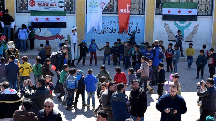 Anda Kardeşe Vefa Derneği, Suriye’nin kuzeyindeki Bab ilçesinin Kabbasin beldesinde çocuklar için bayram etkinliği organize etti.