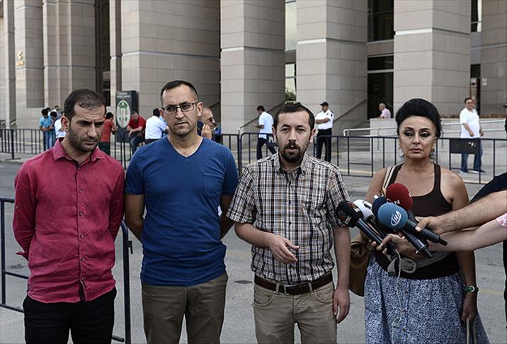 Çağlayan'daki İstanbul Adalet Sarayına gelen Özgürlükçü Hukukçular Derneği (ÖHD) üyesi avukatlar, hazırladıkları suç duyurusu dilekçelerini İstanbul Cumhuriyet Başsavcılığına sunmadan önce bir basın açıklaması yaptı.