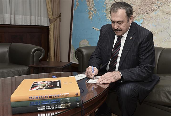 Anadolu Ajansı (AA) tarafından yayımlanan arşiv niteliğindeki "Yarım Kalan Devrim: Mısır", "Abluka, Savaş, Direniş: Gazze" ve "Yetim Kalan Ülke: Suriye" kitaplarından oluşan "AA Oradaydı" özel koleksiyon baskısının "29" numaralı nüshaları, Orman ve Su İşleri Bakanı Veysel Eroğlu'na takdim edildi.