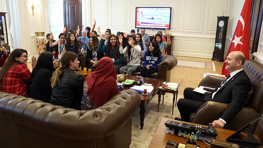 Soylu, Diyarbakır'ın Bismil ilçesindeki Bismil Fen Lisesi'nden 40 öğrenciyi makamında ağırladı.
