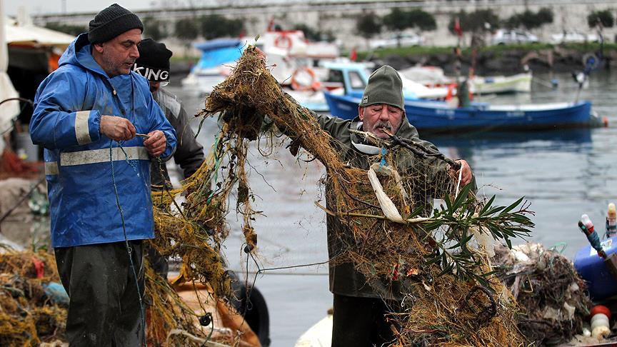 Samsun'da 34 yıldır kıyı balıkçılığı yapan Aydın Kara, gazetecilere, denizin kirletilmesi sonucu ağların artık balık yerine çöple dolduğunu söyledi.