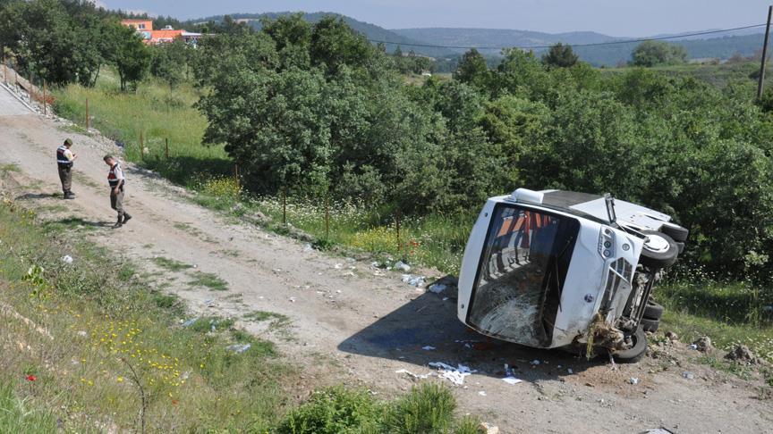 Balıkesir'de, bir midibüsün şarampole devrilmesi sonucu ilk belirlemelere göre 17 kişi yaralandı.