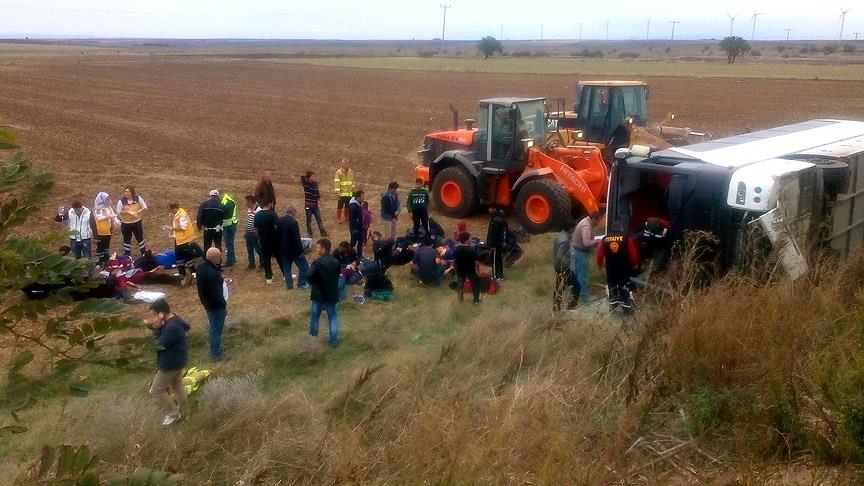Balıkesir'in Bandırma ilçesinde, yasa dışı yollardan Avrupa ülkelerine gitmeye çalışan Suriye ve Afganistan uyruklu grubun bulunduğu otobüsün devrilmesi sonucu 30 kişi yaralandı.