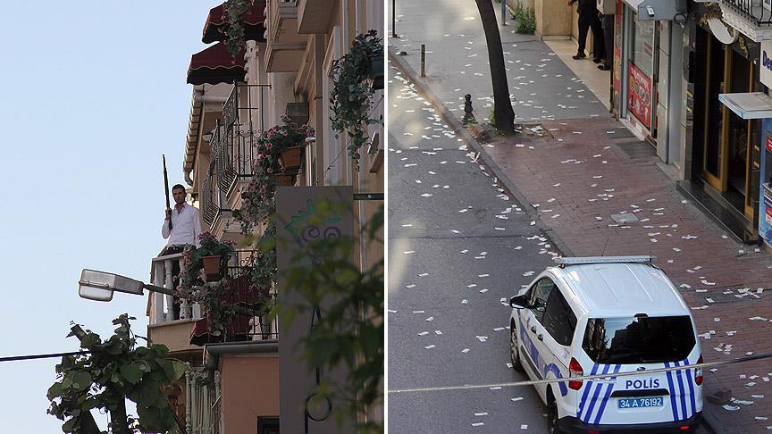 Banka çalışanlarının alarm düğmesine basmasının ardından polis ekiplerinin olay yerine geldiğini gören silahlı kişi, binanın çatı katının balkona çıktı. Şüpheli, silahla havaya ateş açtıktan sonra bankadan aldığı belirtilen bir miktar parayı boşluğa saçtı.