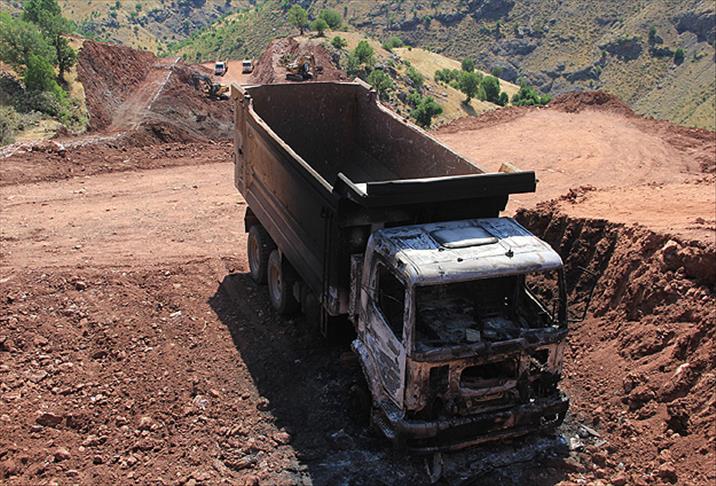 AA muhabirinin aldığı bilgiye göre, gece geç saatlerde ilçeye bağlı Doğanlı köyünde yapımı devam eden Koçali Barajı inşaatına gelen ve terör örgütü PKK üyesi oldukları belirtilen 6 kişi, 2 kamyon ve 3 iş makinesini ateşe vererek kaçtı.