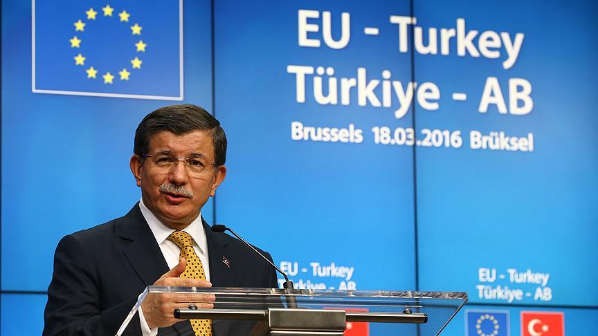 Başbakan Ahmet Davutoğlu, "Bugün iki sebepten dolayı tarihi bir gün. İlk olarak bugün Türkiye'de Şehitler Günü. Bugün tarihi bir gün, çünkü Türkiye ve AB arasında bir anlaşmaya vardık" dedi.