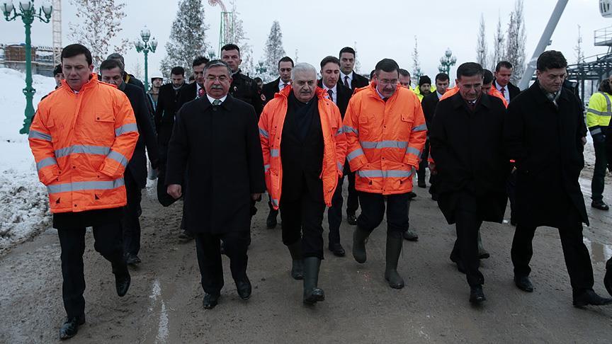 İşçi parkası giyen Yıldırım, dünyanın en büyük tema parklarından olan ve Ankara Büyükşehir Belediyesince yapımı sürdürülen Ankapark'ı gezdi. Yıldırım, önümüzdeki aylarda açılması planlanan proje hakkında Büyükşehir Belediye Başkanı Melih Gökçek'ten bilgi aldı.