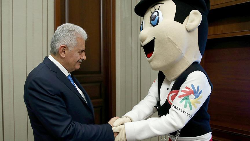 Başbakan Binali Yıldırım'ın kabulün sonunda Bakan Akif Çağatay Kılıç ve maskotlarla hatıra fotoğrafı çektirdiği bildirildi.