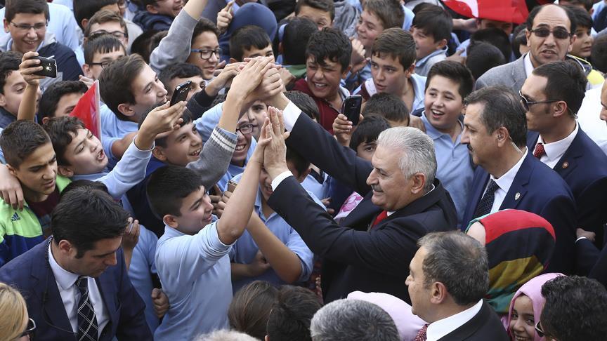 Başbakan Yıldırım, AK Parti 25. İstişare ve Değerlendirme Toplantısı için bulunduğu Afyonkarahisar'da, Kadıana İmam Hatip Ortaokulu öğrencileriyle bir araya geldi.
