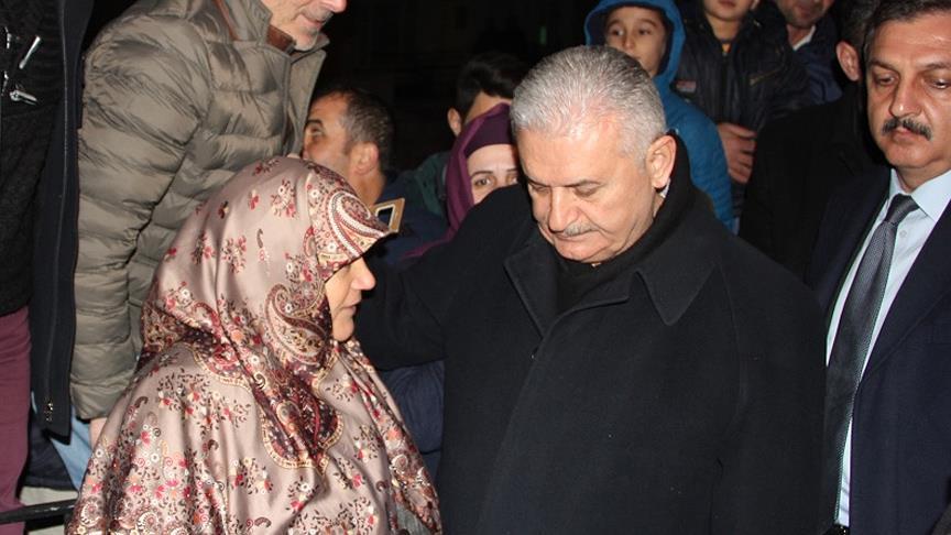 Apartmanın önünde şehidin yakınları ve kalabalık vatandaş grubu tarafından karşılanan Yıldırım'a sevgi gösterisinde bulunuldu.