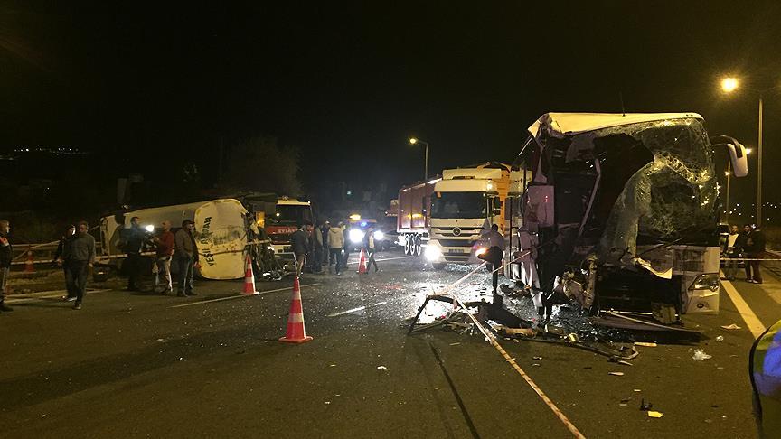 Ankara'da bir yolcu otobüsünün akaryakıt tankeri ve otomobile çarpması sonucu 25 kişi yaralandı.