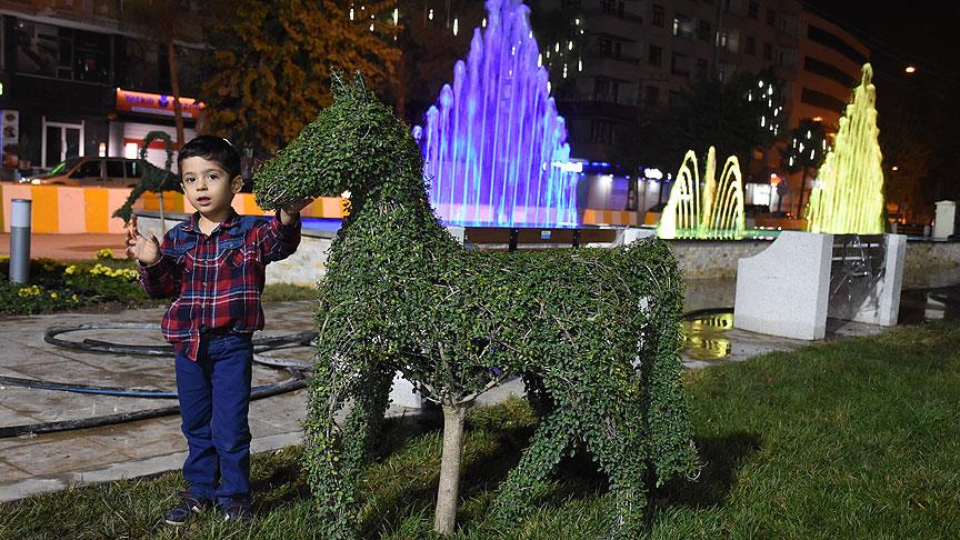 Su havuzlarının inşa edildiği parka dikilen at, tavus kuşu, yunus balığı, üçgen, kare görünümlü ağaçlar vatandaşların ilgi odağı oldu.