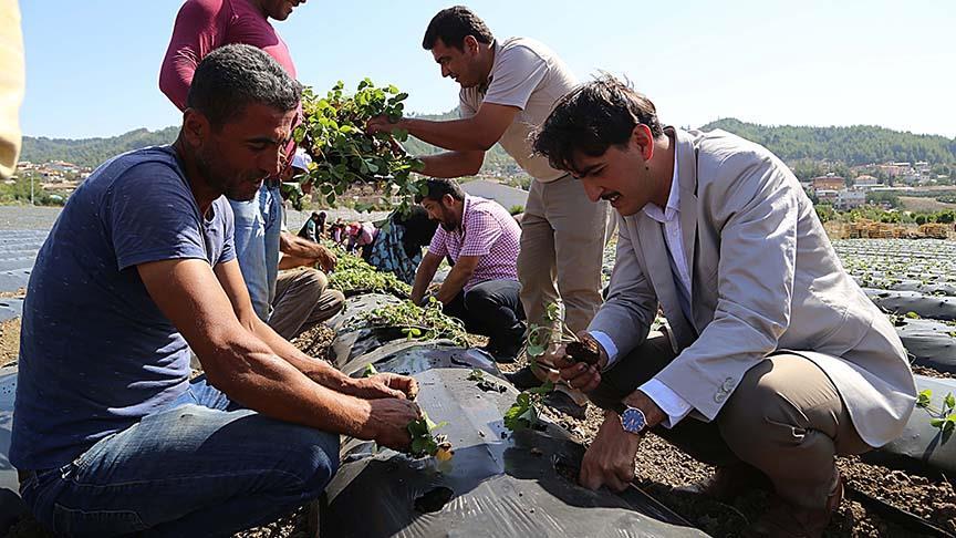 İlçedeki 130 dekarlık alan için toplam 650 bin çilek fidanı temin ettiklerini anlatan Yüce, Suriyelilerin kendine tahsis edilmiş alanda çilek ekmeye başladığını kaydetti.