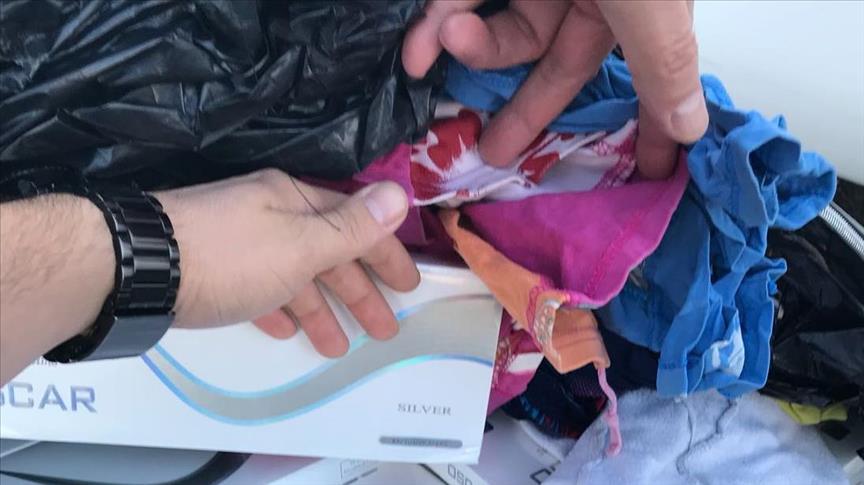 Suriye uyruklu R.N'nin davranışlarından şüphelenen ekipler, yolcunun valizinde ve kucağındaki 5 aylık bebeğinin kundağında bin 500 paket kaçak sigara ele geçirdi.
