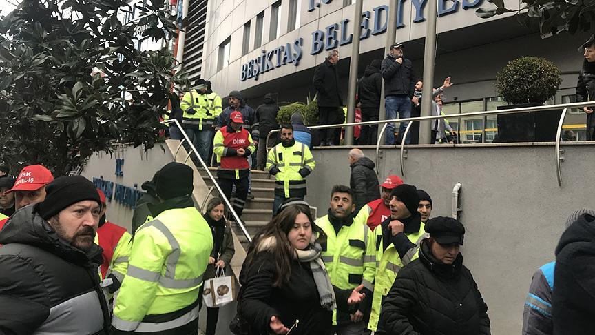 Levent Birlik Parkı'nda toplanan belediyenin çeşitli birimlerinde çalışan yaklaşık 200 işçi, "İş, adalet, özgürlük", "Toplu sözleşme hakkımız engellenemez", "İşçi hakları kutsaldır" sloganları atarak, Nispetiye Caddesi'ndeki Beşiktaş Belediyesine yürüdü.