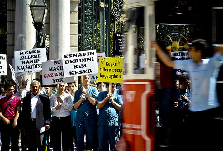 Galatasaray Meydanı'nda bir araya gelen bir grup Beyoğlu esnafı, ellerinde "Gezi dediniz, ekmeğimizden ettiniz", "Taksim herkesindir", "Esnafın ahını tek geçerim", "Oyuna gelme ekmeğin için yaşa" yazılı dövizler taşıyarak, çeşitli sloganlar attı.