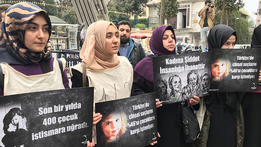 Galatasaray Meydanı'nda toplanan gruptakiler, kadına şiddet, çocuk istismarı, cinsel suçlar, kayıt dışı çalıştırılan çocuklar ve uyuşturucu bağımlılığı gibi konularla ilgili istatistiklerin yer aldığı dövizler taşıdı.