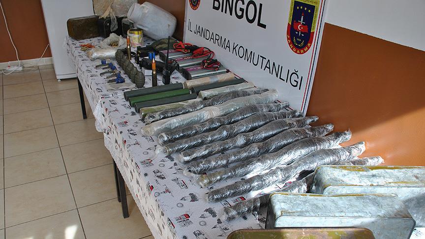 Bingöl'de gerçekleştirilen operasyonda ortaya çıkarılan sığınakta PKK'lı teröristlere ait çok sayıda silah ve mühimmat ile yaşam malzemesi bulundu.