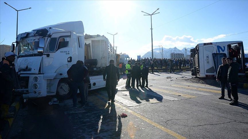 İlçe girişindeki kavşakta, Mehmet Zeki Çınar yönetimindeki 65 EA 361 plakalı yolcu otobüsü ile Mehmet Cevat Akdağ'ın kullandığı 22 BE 825 plakalı tır çarpıştı.