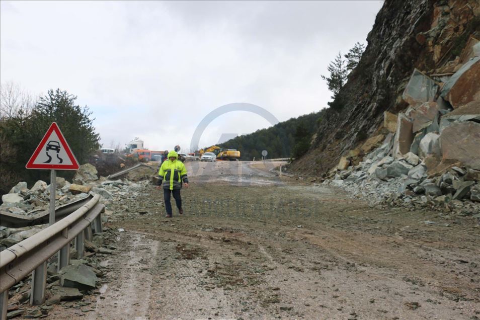Etkili olan sağanak nedeniyle Mudurnu-Ankara kara yolunda heyelan meydana geldi. ( İlhami Çetin - Anadolu Ajansı )