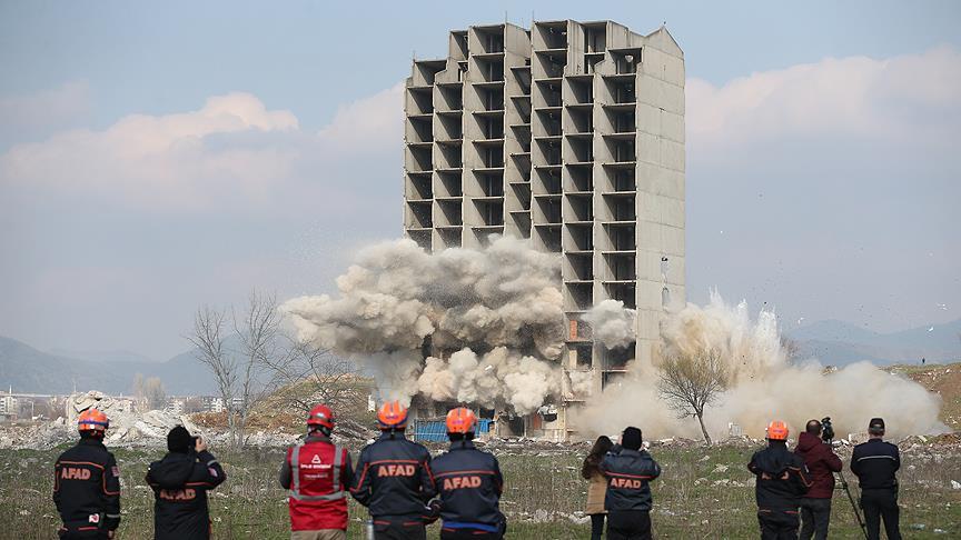 TRT Belgesel kanalında yayınlanacak "Bakalım işe yarayacak mı?" adlı programda "Depremde yaşam üçgeni oluşturmaya yarayacak bir eşya var mı?" sorusuna cevap aramak için Osmangazi ilçesindeki 13 katlı boş bir binanın ilk 3 katına uzmanlarca 300 kilogram dinamit yerleştirildi.
