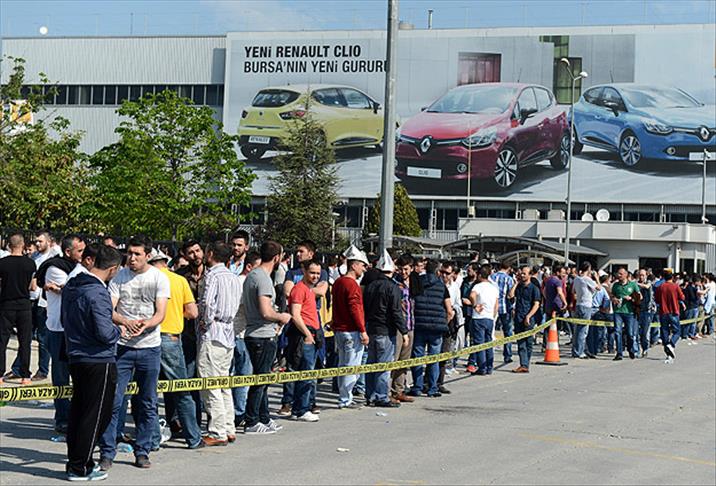 Bursa'da faaliyet gösteren otomobil fabrikası Oyak Renault'ta işçiler, ücretlerinde iyileştirme talebiyle eylem başlattı.