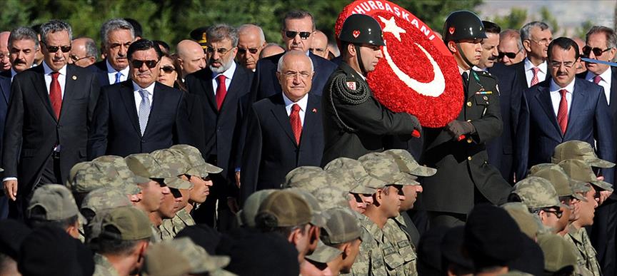 Başkent Ankara'daki ilk tören, Cumhurbaşkanı Vekili ve TBMM Başkanı Cemil Çiçek, Başbakan Recep Tayyip Erdoğan, Genelkurmay Başkanı Orgeneral Necdet Özel, Anayasa Mahkemesi Başkanı Haşim Kılıç, CHP Genel Başkan Vekili Adnan Keskin, Başbakan Yardımcıları Bülent Arınç, Beşir Atalay ve Bekir Bozdağ, Danıştay Başkanı Hüseyin Karakulukçu, Yargıtay Başkanı Ali Alkan, MHP Genel Başkanı Devlet Bahçeli, kuvvet komutanları, bazı bakanlar kurulu üyeleri ve diğer devlet erkanının Aslanlı Yol'dan yürüyüşüyle başladı.