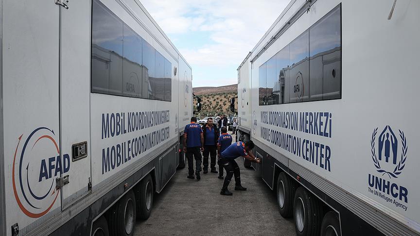 İdlib'de çatışmasızlık bölgesine yönelik intikale ilişkin gelişmeleri takip eden gazetecilerin çalışmalarını kolaylaştırmak amacıyla, Afet ve Acil Durum Yönetimi Başkanlığına ait "mobil basın merkezi" olarak hizmet veren tır, sınır kapısına getirildi.