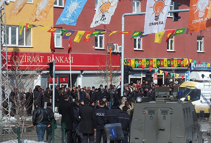 AK Parti İlçe Başkanlığı önünde düzenlenen ve partililerin yoğun ilgi gösterdiği mitingde Van Büyükşehir Belediye Başkan adayı Gülaçar'ın konuşma yaptığı sırada alana gelen bir grup, partililere taş ve sopalarla saldırdı.