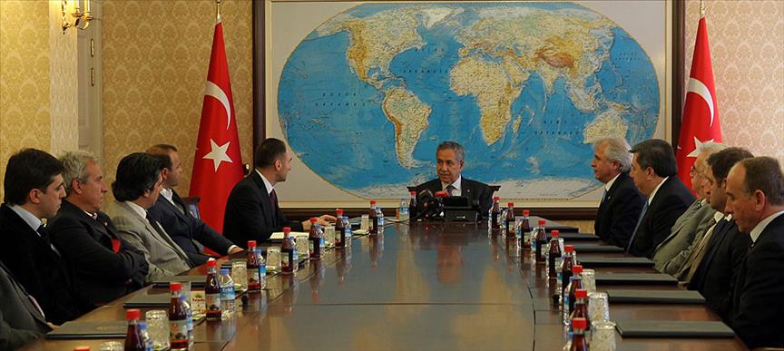 Başbakan Yardımcısı Bülent Arınç, Bursa Gençlik Hizmetleri ve Spor İl Müdürü Süleyman Şahin ve beraberindekileri, Başbakanlık Merkez Bina'da kabul etti.