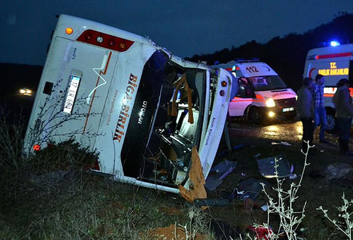 Çanakkale'den Biga'ya giden Hasan Gökmen idaresindeki 17 LR 680 plakalı minibüsün Dışbudak köyü yakınlarında devrilmesi sonucu yaralanan 23 kişinin Biga ve Çanakkale'deki hastanelerde tedavisi sürüyor.