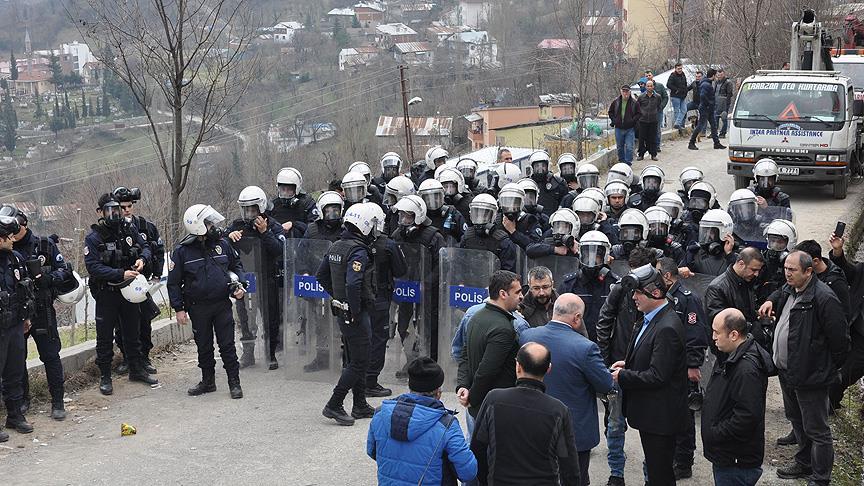 Artvin'de, Cerattepe bölgesine giden yolu kapatarak maden şirketi yetkilileri ve iş makinelerinin geçişine izin vermeyen gruba, ikinci gün de dağılmamaları üzerine güvenlik güçleri yeniden müdahale etti.