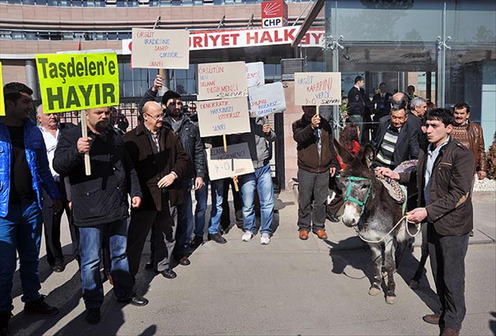 Çankaya ilçe örgütü üyesi olduklarını belirten bir grup partili ise genel merkez önüne getirdikleri "eşekle" eylem yaptı.