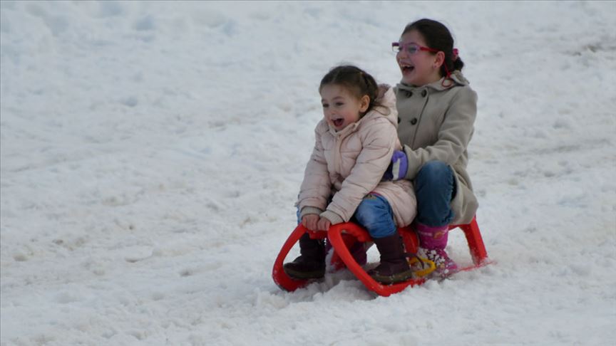 Hafta sonunu fırsat bilerek Cıbıltepe'ye gelen vatandaşlar, kayak ve snowboard yaptı. Bazıları da çocuklarıyla kızakla kaymayı tercih etti.
