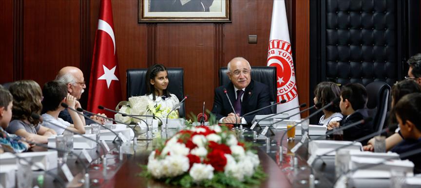 TBMM Başkanı Cemil Çiçek, 23 Nisan Ulusal Egemenlik ve Çocuk Bayramı dolayısıyla, Meclis'te Milli Eğitim Bakanı Nabi Avcı ve çocuklarla bir araya geldi.